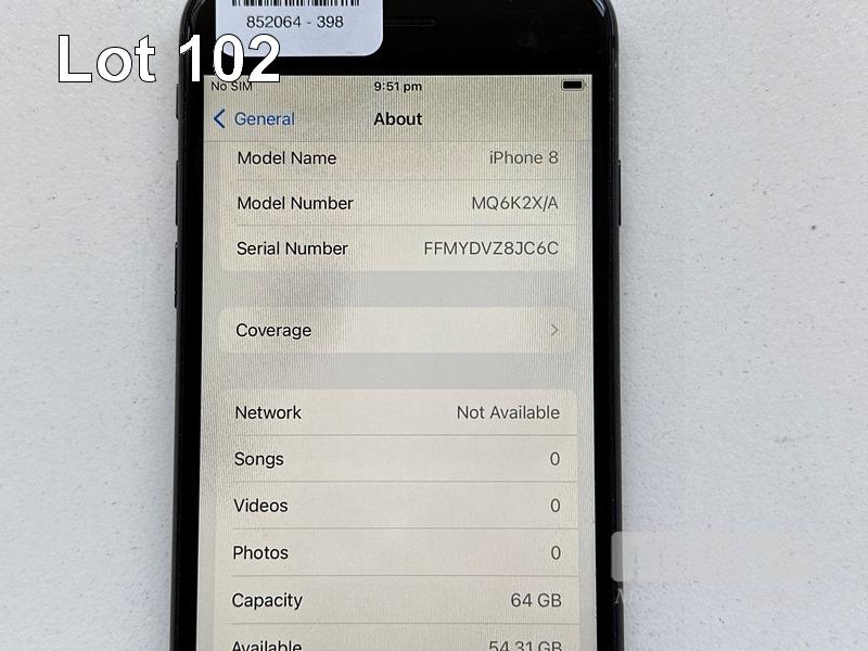 APPLE iPHONE 8, 64GB, SPACE GREY, MODEL MQ6K2X/A, BATTERY HEALTH 85% (NO CABLE, NO CHARGER) S/N:FFMYDVZ8JC6C