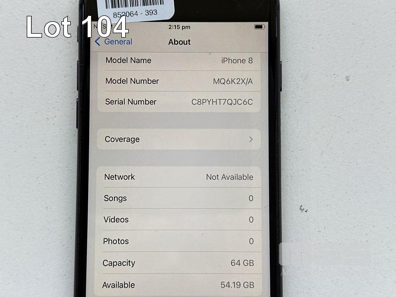 APPLE iPHONE 8, 64GB, SPACE GREY, MODEL MQ6K2X/A, BATTERY HEALTH 85% (NO CABLE, NO CHARGER) S/N:C8PYHT7QJC6C