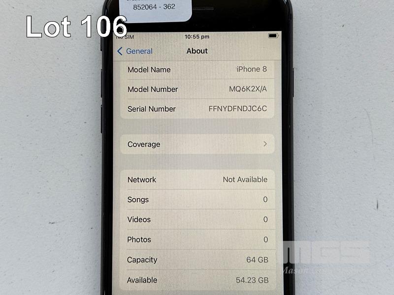 APPLE iPHONE 8, 64GB, SPACE GREY, MODEL MQ6K2X/A, BATTERY HEALTH 85% (NO CABLE, NO CHARGER) S/N:FFNYDFNDJC6C