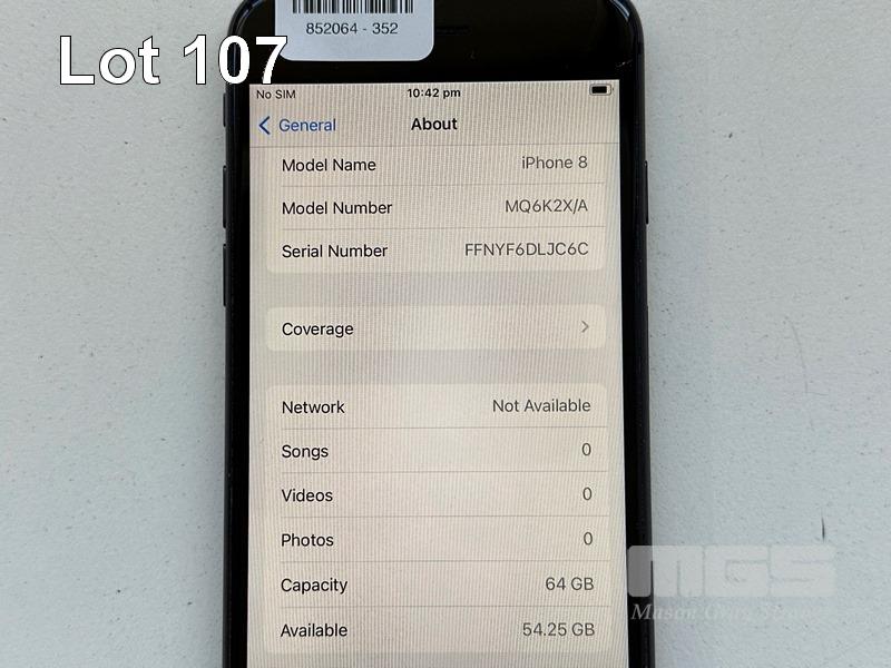 APPLE iPHONE 8, 64GB, SPACE GREY, MODEL MQ6K2X/A, BATTERY HEALTH 85% (NO CABLE, NO CHARGER) S/N:FFNYF6DLJC6C