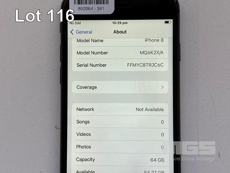 APPLE iPHONE 8, 64GB, SPACE GREY, MODEL MQ6K2X/A, BATTERY HEALTH 84% (NO CABLE, NO CHARGER) S/N:FFMYC8TRJC6C