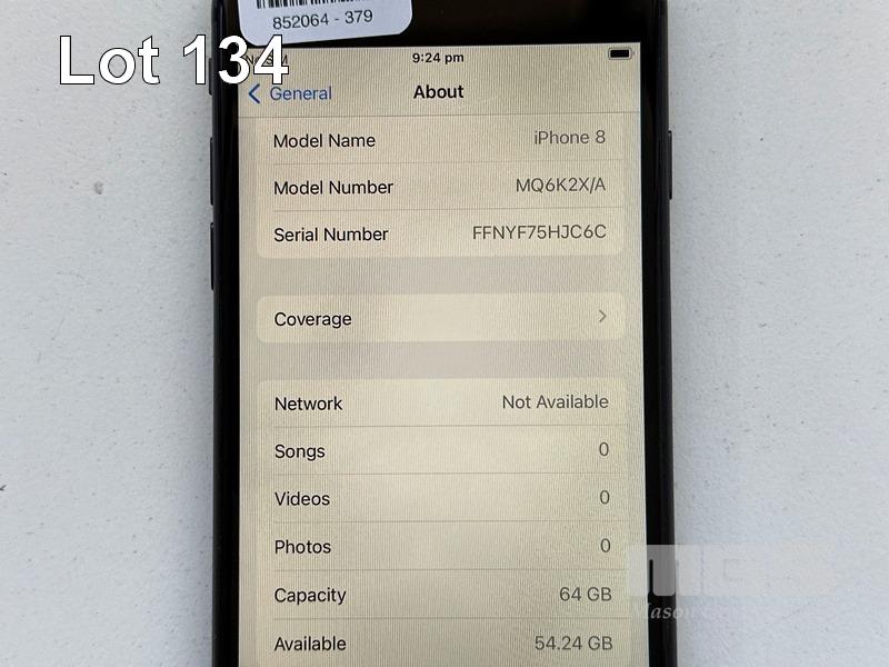 APPLE iPHONE 8, 64GB, SPACE GREY, MODEL MQ6K2X/A, BATTERY HEALTH 90% (NO CABLE, NO CHARGER) (NOTE: MINOR SCRATCHES ON SCREEN) S/N:FFNYF75HJC6C