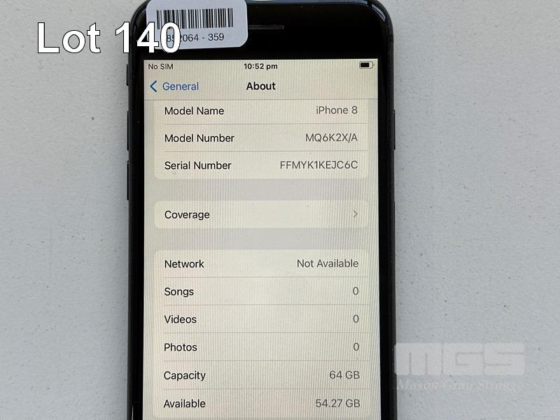 APPLE iPHONE 8, 64GB, SPACE GREY, MODEL MQ6K2X/A, BATTERY HEALTH 83% (NO CABLE, NO CHARGER) (NOTE: DAMAGED BACK) S/N:FFMYK1KEJC6C