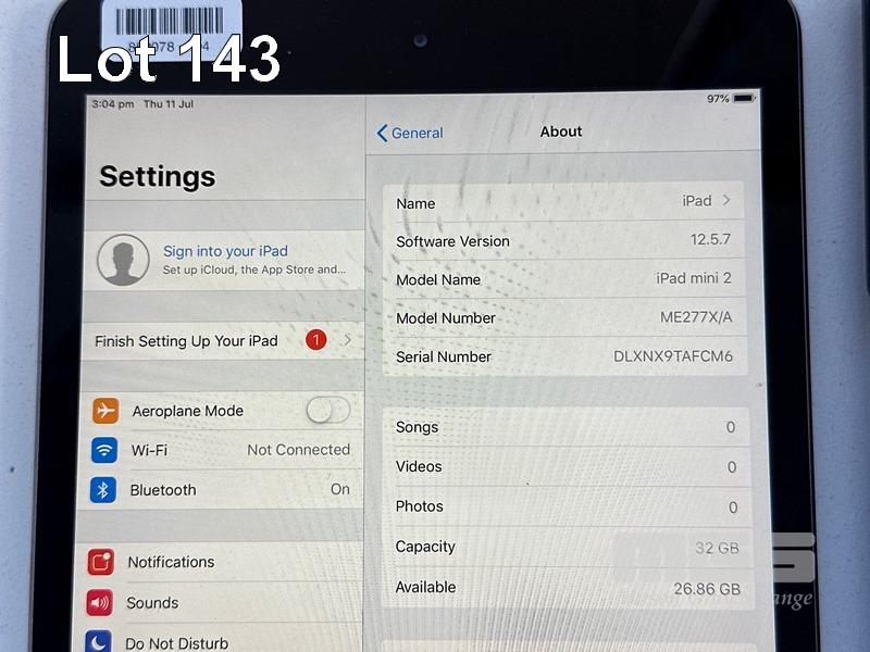 APPLE iPAD MINI 2, 32GB, Wi-Fi, SPACE GREY, MODEL ME277X/A, A1489 (NO CABLE, NO CHARGER) S/N:DLXNX9TAFCM6