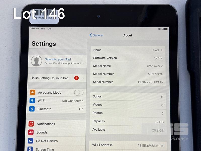 APPLE iPAD MINI 2, 32GB, Wi-Fi, SPACE GREY, MODEL ME277X/A, A1489 (NO CABLE, NO CHARGER) S/N:DLXNX98LFCM6