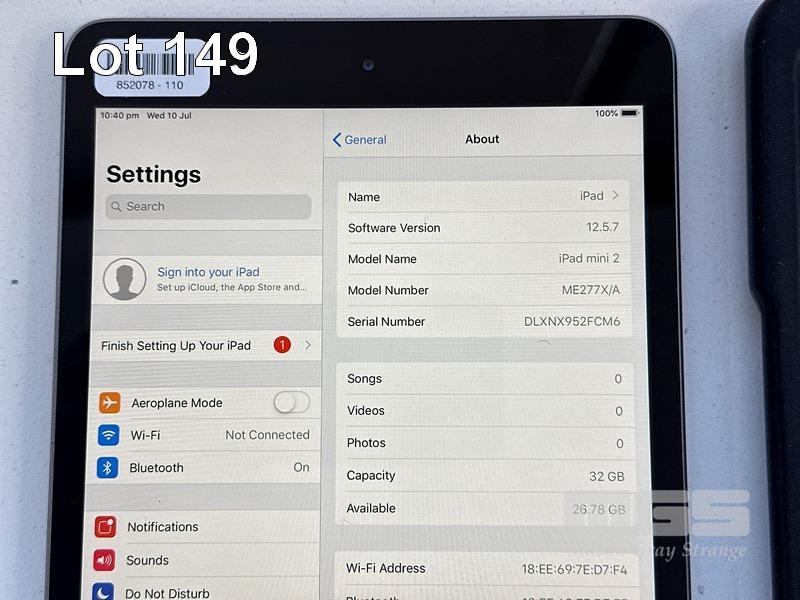 APPLE iPAD MINI 2, 32GB, Wi-Fi, SPACE GREY, MODEL ME277X/A, A1489 (NO CABLE, NO CHARGER) S/N:DLXNX952FCM6