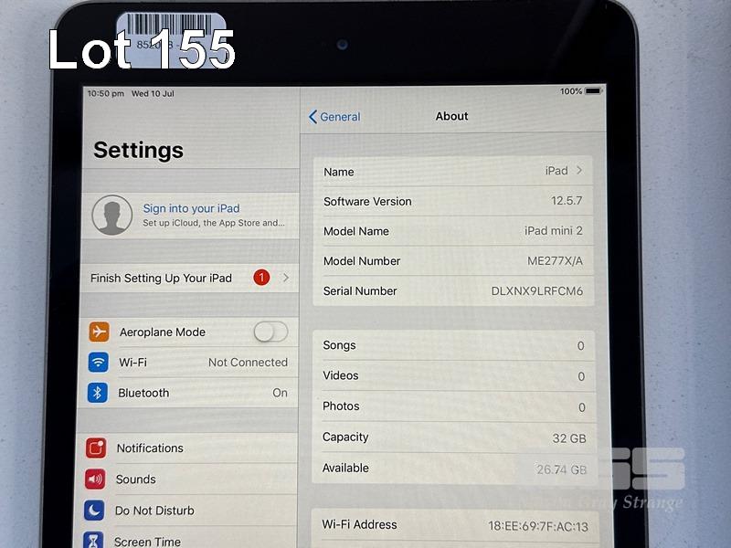 APPLE iPAD MINI 2, 32GB, Wi-Fi, SPACE GREY, MODEL ME277X/A, A1489 (NO CABLE, NO CHARGER) S/N:DLXNX9LRFCM6