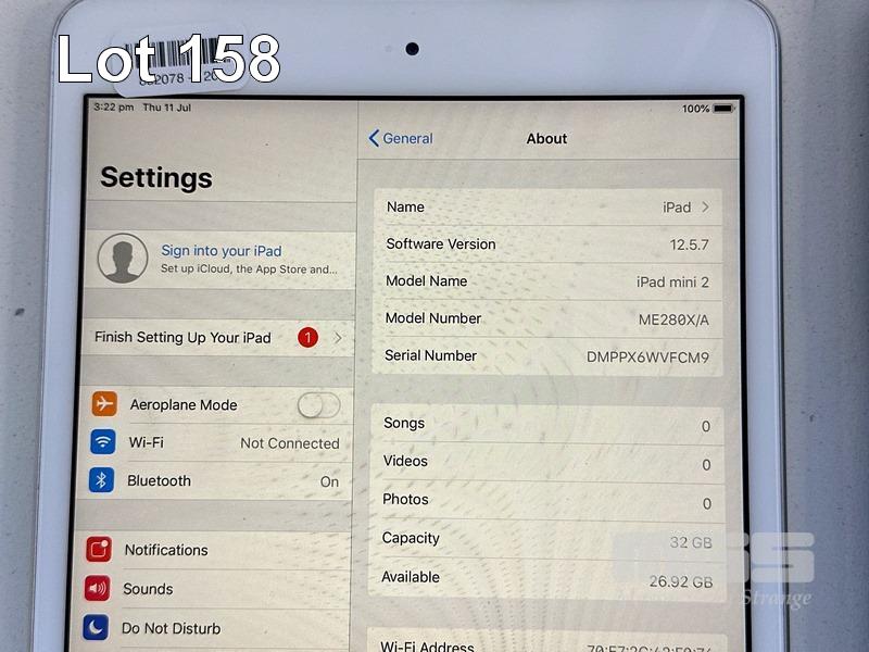 APPLE iPAD MINI 2, 32GB, Wi-Fi, SILVER, MODEL ME280X/A, A1489 (NO CABLE, NO CHARGER) S/N:DMPPX6WVFCM9