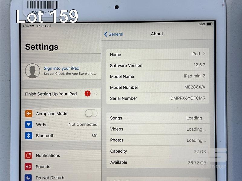 APPLE iPAD MINI 2, 32GB, Wi-Fi, SILVER, MODEL ME280X/A, A1489 (NO CABLE, NO CHARGER) S/N:DMPPX6YGFCM9