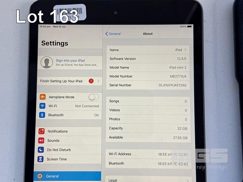 APPLE iPAD MINI 2, 32GB, Wi-Fi, SPACE GREY, MODEL ME277X/A, A1489 (NO CABLE, NO CHARGER) (NOTE: DENT IN CORNER OF CASING) S/N:DLXNX9UKFCM6