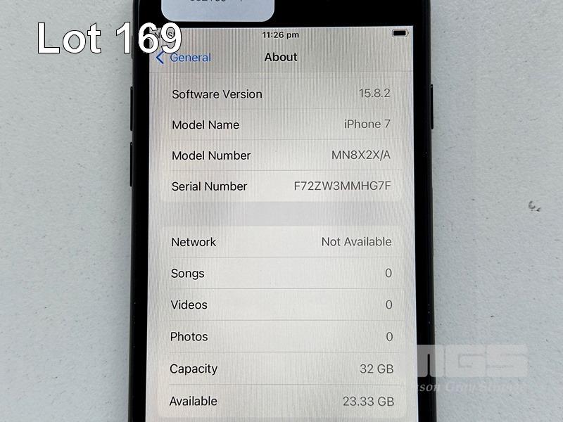 APPLE iPHONE 7, 32GB, BLACK, MODEL MN8X2X/A, BATTERY HEALTH 94% (NO CABLE, NO CHARGER) S/N:F72ZW3MMHG7F