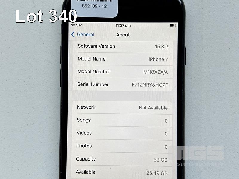 APPLE iPHONE 7, 32GB, BLACK, MODEL MN8X2X/A, BATTERY HEALTH 94% (NO CABLE, NO CHARGER) (NOTE: MINOR SCRATCHES ON SCREEN) S/N:F71ZNRY6HG7F