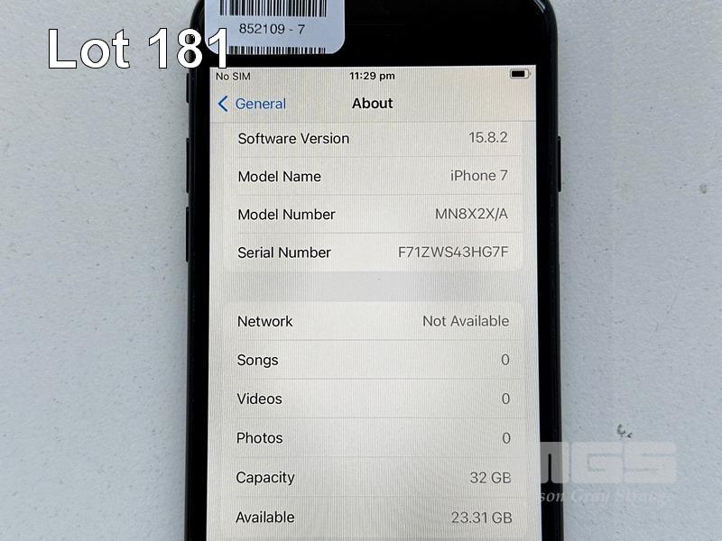 APPLE iPHONE 7, 32GB, BLACK, MODEL MN8X2X/A, BATTERY HEALTH 92% (NO CABLE, NO CHARGER) (NOTE: MINOR SCRATCHES ON SCREEN) S/N:F71ZWS43HG7F