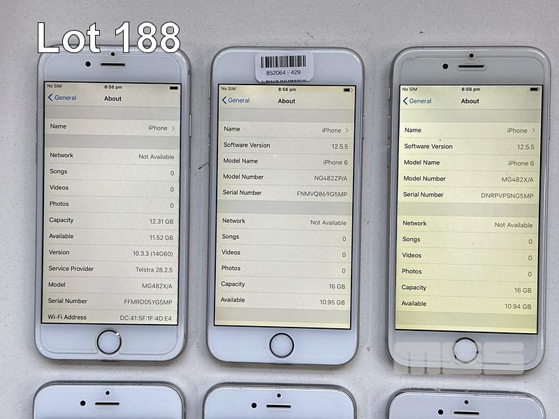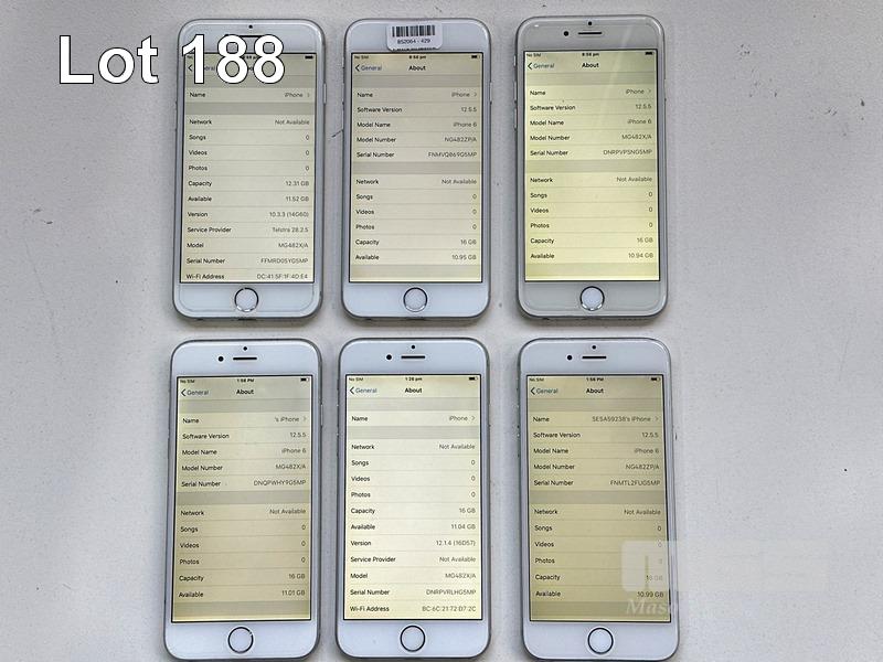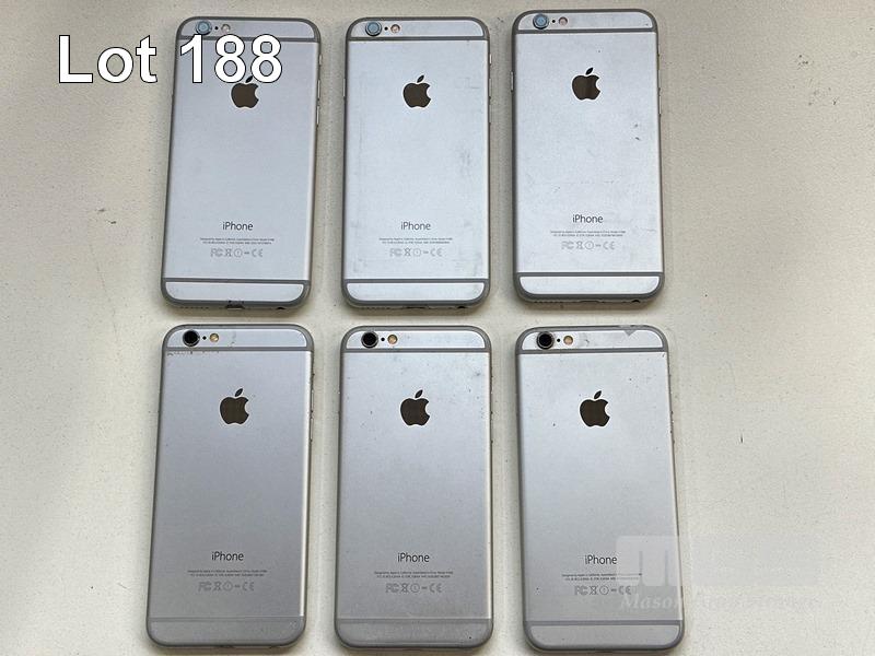 6 x APPLE iPHONE 6, 16GB, SILVER, MODEL A1586 (NO CABLES, NO CHARGERS) S/N:FFMRD05YG5MP, FNMVQ069G5MP, DNRPVPSNG5MP, DNQPWHY9G5MP, DNRPVRLHG5MP, FNMTL2FUG5MP
