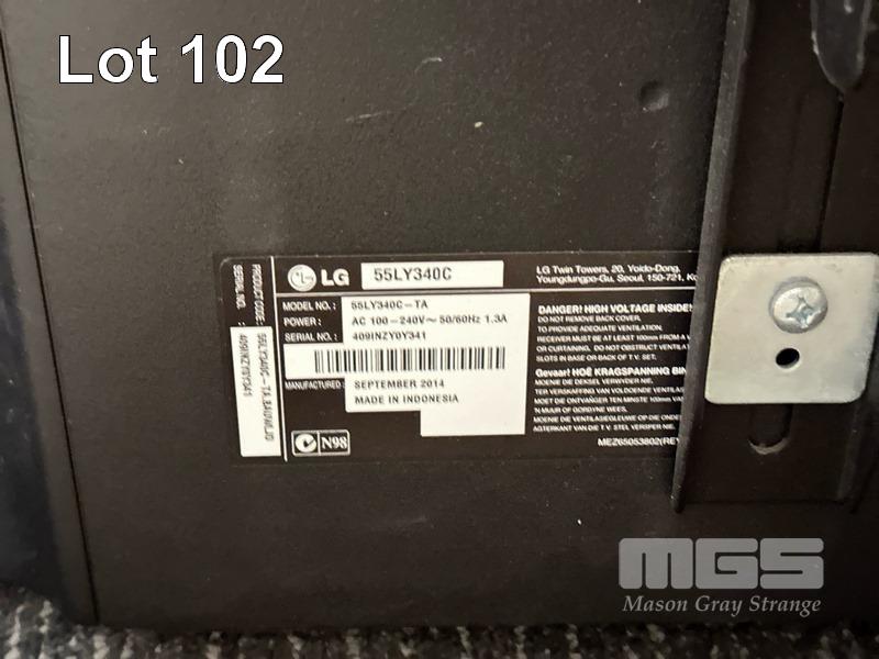 LG 55" LED TV, MODEL 55LY340C-TA WITH WALL MOUNT BRACKET (NO REMOTE, NO STAND) (NOTE: SCRATCH ON SCREEN) S/N:409INZY0Y341