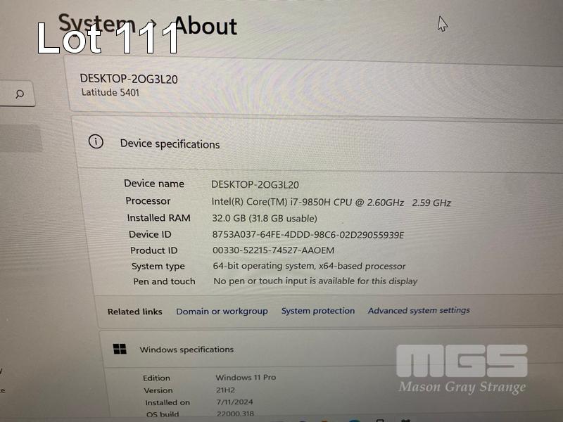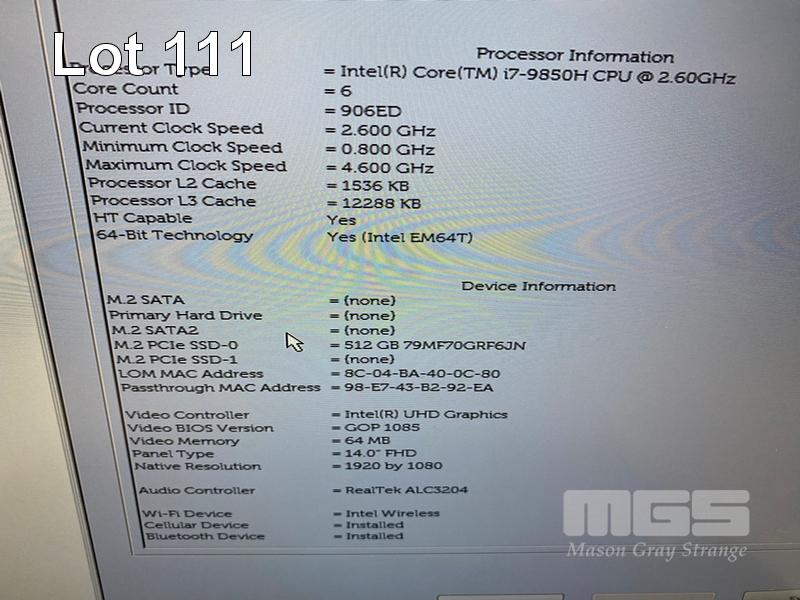 LAPTOP, DELL LATITUDE 5401, CORE i7 9850H (9TH GEN) @ 2.6GHz, 32GB DDR4 RAM, 512GB NVMe M.2 SSD, 14" WIDESCREEN (1920x1080), 2GB NVIDIA GEFORCE MX150 VIDEO, INTEL UHD GRAPHICS 630, Wi-Fi, CELLULAR, BLUETOOTH, WINDOWS 11 PRO INSTALLED (NO POWER SUPPLY) S/N:GPVJ0Z2