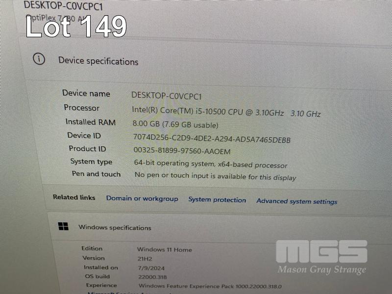 ALL-IN-ONE PC, DELL OPTIPLEX 7480, CORE i5 10500 (10TH GEN) @ 3.1GHz, 8GB DDR4 RAM, 512GB NVMe M.2 SSD, INBUILT 23.8" FHD WIDESCREEN (1920x1080), INTEL HD VIDEO, WEBCAM, 5 x USB, 1 x USB-C, WINDOWS 11 HOME INSTALLED, KEYBOARD & MOUSE S/N:4Y14X63