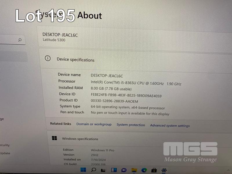 LAPTOP, DELL LATITUDE 5300, CORE i5 8365U (8TH GEN) @ 1.6GHz, 8GB DDR4 RAM, 256GB NVMe M.2 SSD, 13.3" WIDESCREEN (1920x1080), INTEL UHD GRAPHICS 620, Wi-Fi, CELLULAR, BLUETOOTH, WINDOWS 11 PRO INSTALLED (NO POWER SUPPLY) (NOTE: MINOR MARKS ON SCREEN) S/N:2XX5WZ2