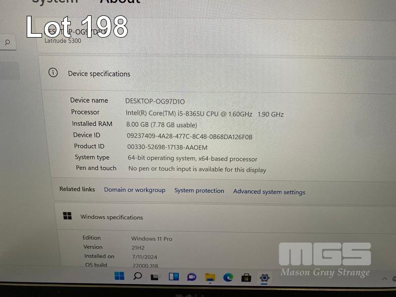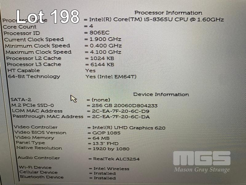 LAPTOP, DELL LATITUDE 5300, CORE i5 8365U (8TH GEN) @ 1.6GHz, 8GB DDR4 RAM, 256GB NVMe M.2 SSD, 13.3" WIDESCREEN (1920x1080), INTEL UHD GRAPHICS 620, Wi-Fi, CELLULAR, BLUETOOTH, WINDOWS 11 PRO INSTALLED (NO POWER SUPPLY) (NOTE: MINOR MARKS ON SCREEN) S/N:7TRWNW2