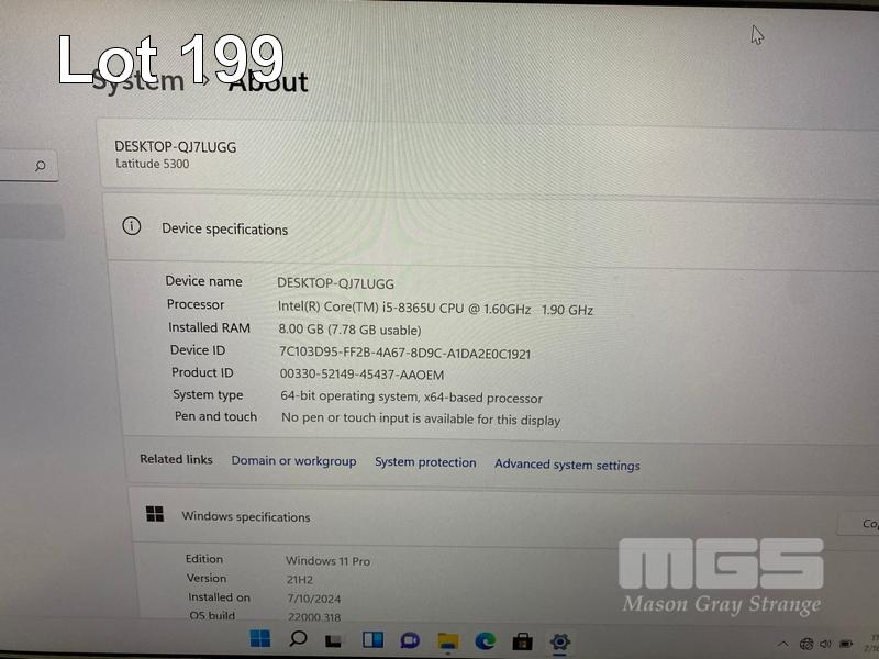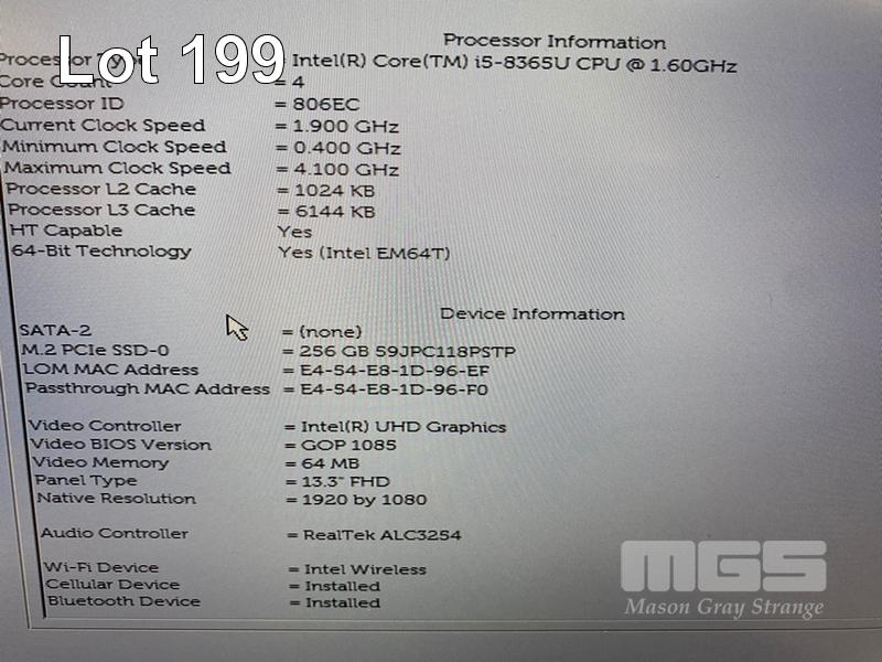 LAPTOP, DELL LATITUDE 5300, CORE i5 8365U (8TH GEN) @ 1.6GHz, 8GB DDR4 RAM, 256GB NVMe M.2 SSD, 13.3" WIDESCREEN (1920x1080), INTEL UHD GRAPHICS 620, Wi-Fi, CELLULAR, BLUETOOTH, WINDOWS 11 PRO INSTALLED (NO POWER SUPPLY) (NOTE: MINOR MARKS ON SCREEN) S/N:HTCYLT2
