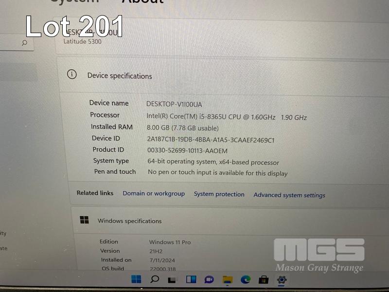 LAPTOP, DELL LATITUDE 5300, CORE i5 8365U (8TH GEN) @ 1.6GHz, 8GB DDR4 RAM, 256GB NVMe M.2 SSD, 13.3" WIDESCREEN (1920x1080), INTEL UHD GRAPHICS 620, Wi-Fi, CELLULAR, BLUETOOTH, WINDOWS 11 PRO INSTALLED (NO POWER SUPPLY) (NOTE: MINOR MARKS ON SCREEN) S/N:FTRWNW2