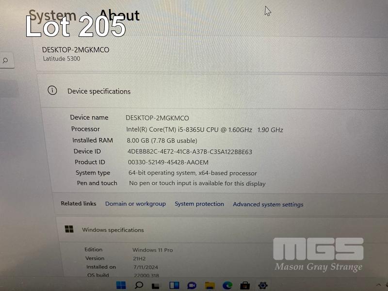 LAPTOP, DELL LATITUDE 5300, CORE i5 8365U (8TH GEN) @ 1.6GHz, 8GB DDR4 RAM, 256GB NVMe M.2 SSD, 13.3" WIDESCREEN (1920x1080), INTEL UHD GRAPHICS 620, Wi-Fi, CELLULAR, BLUETOOTH, WINDOWS 11 PRO INSTALLED (NO POWER SUPPLY) (NOTE: MINOR MARKS ON SCREEN) S/N:6TCYLT2