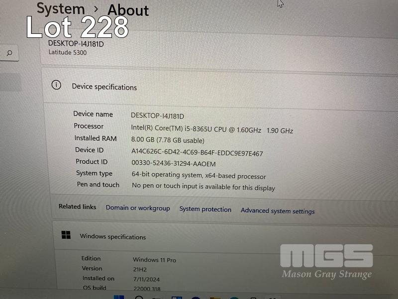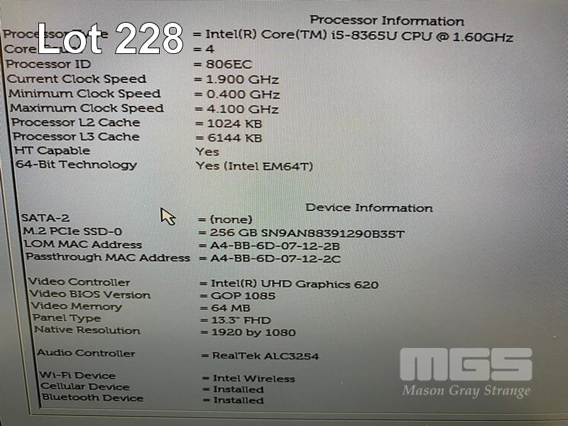 LAPTOP, DELL LATITUDE 5300, CORE i5 8365U (8TH GEN) @ 1.6GHz, 8GB DDR4 RAM, 256GB NVMe M.2 SSD, 13.3" WIDESCREEN (1920x1080), INTEL UHD GRAPHICS 620, Wi-Fi, CELLULAR, BLUETOOTH, WINDOWS 11 PRO INSTALLED (NO POWER SUPPLY) (NOTE: MINOR MARKS ON SCREEN) S/N:BF6WGW2