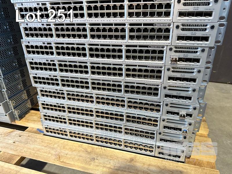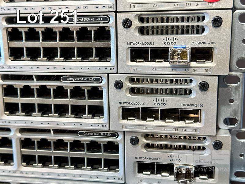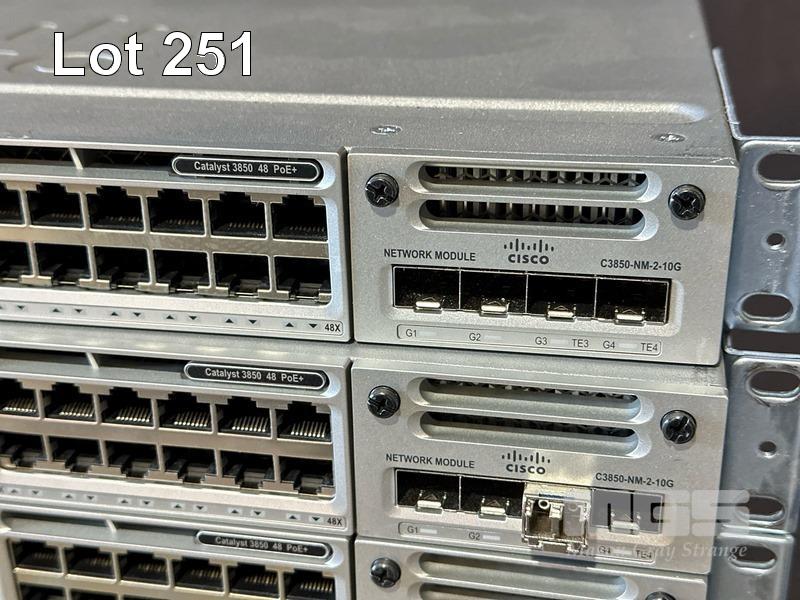 20 x CISCO CATALYST 3850 48 PoE+ 48-PORT SWITCHES, WS-C3850-48F-S V06 EACH WITH C3850-NM-2-10G NETWORK MODULE (ALL NO POWER SUPPLIES)