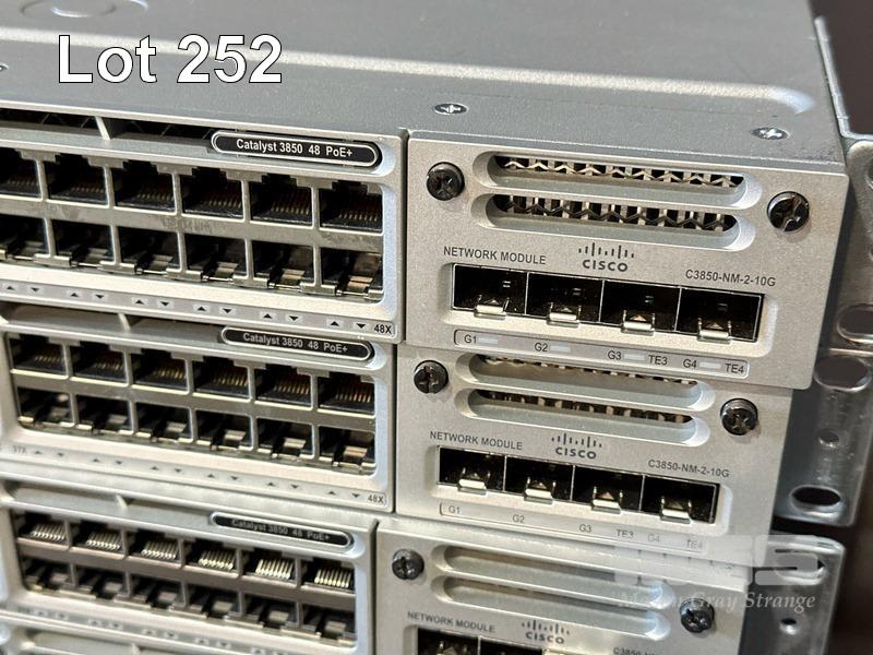 19 x CISCO CATALYST 3850 48 PoE+ 48-PORT SWITCHES, WS-C3850-48F-S V06 EACH WITH C3850-NM-2-10G NETWORK MODULE (ALL NO POWER SUPPLIES)