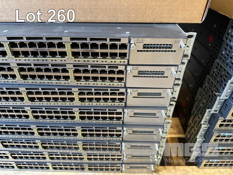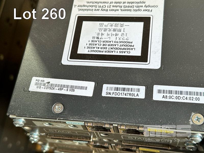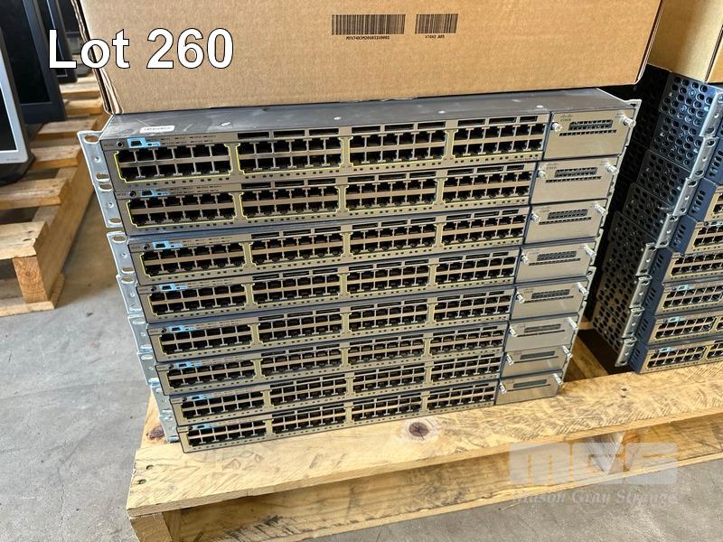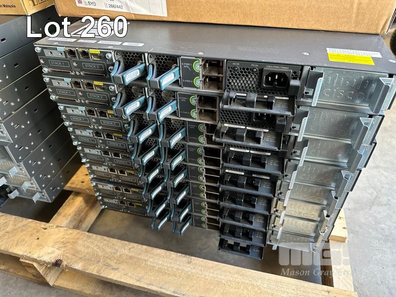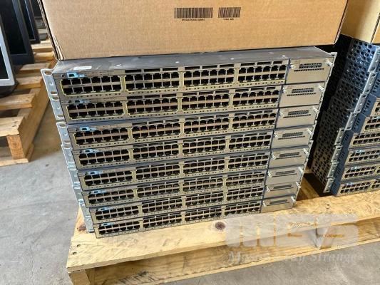 8 x CISCO CATALYST 3750-X SERIES 48-PORT SWITCHES, WS-C3750X-48P-S V05 EACH WITH STACK CABLES & IEC-C15 NOTCH POWER CABLES