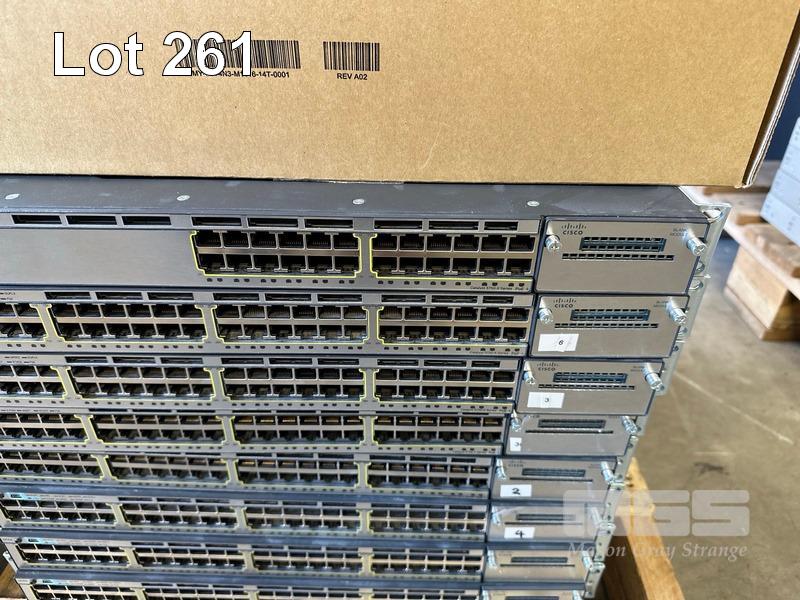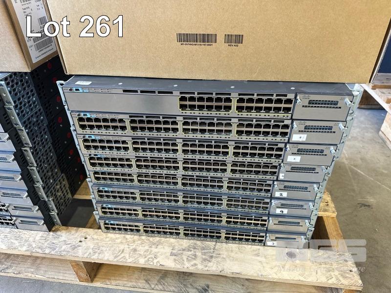 7 x CISCO CATALYST 3750-X SERIES 48-PORT SWITCHES, WS-C3750X-48P-S V04 EACH WITH STACK CABLES & IEC-C15 NOTCH POWER CABLES 1 x CISCO CATALYST 3750-X SERIES 24-PORT SWITCH, WS-C3750X-24P-S V02
