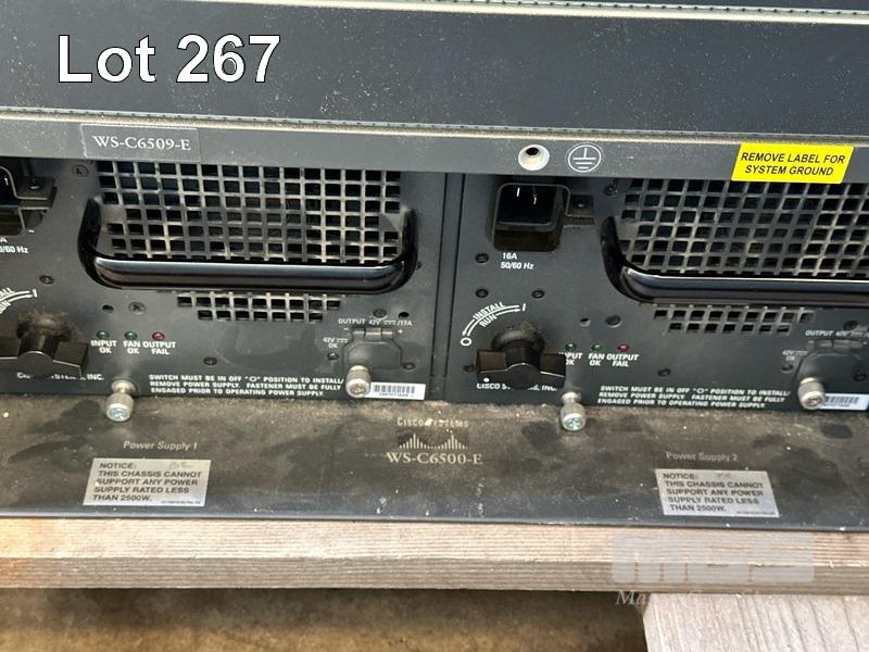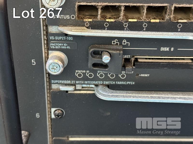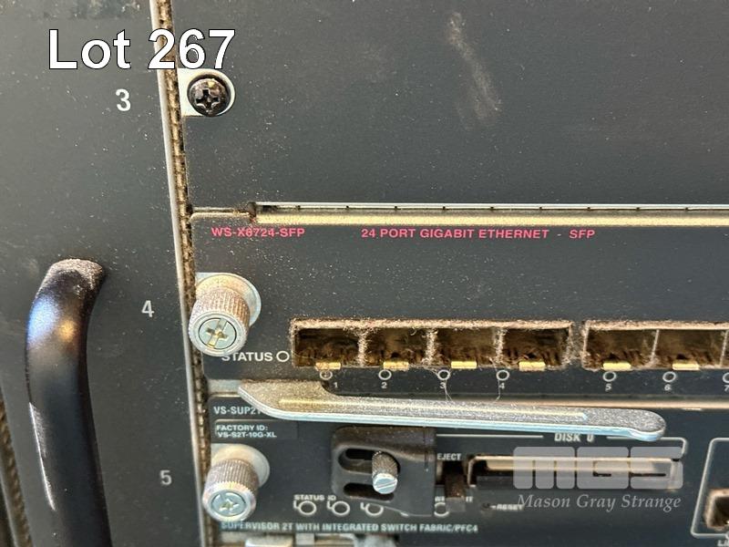 CISCO CATALYST C6500-E SWITCH CHASSIS, MODEL WS-C6509-E V02, INC. 1 x WS-X6908-10G, 1 x WS-X6724-SFP, 1 x VS-SUP2T-10G WITH 15A CABLES & RAILS S/N:SMC0949000M