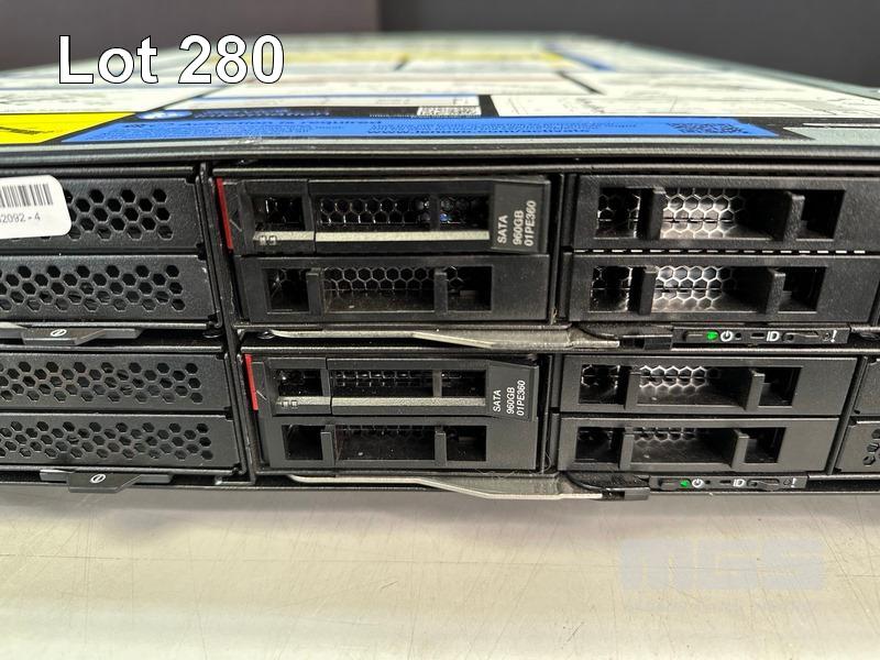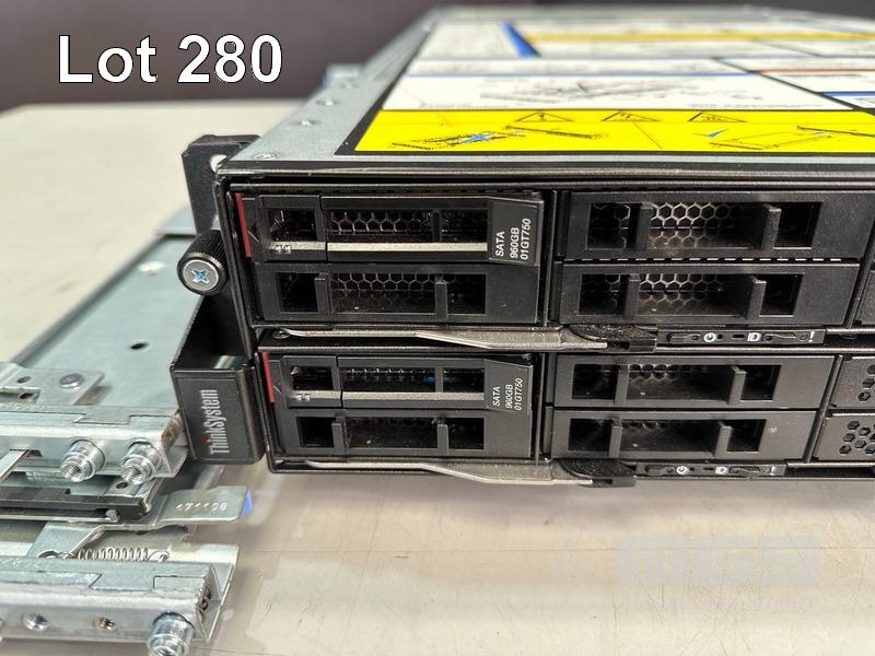 RACKMOUNT SERVER, LENOVO THINKSYSTEM D2 ENCLOSURE, TYPE 7X20, 2U WITH 4 x SD530 SERVER NODES - EACH WITH 2 x XEON GOLD 6248 @ 2.5GHz, 192GB ECC DDR4 RAM (12x16GB), 1 x 960GB SATA SSD WITH RAILS (NO CABLES) S/N:J300FP17