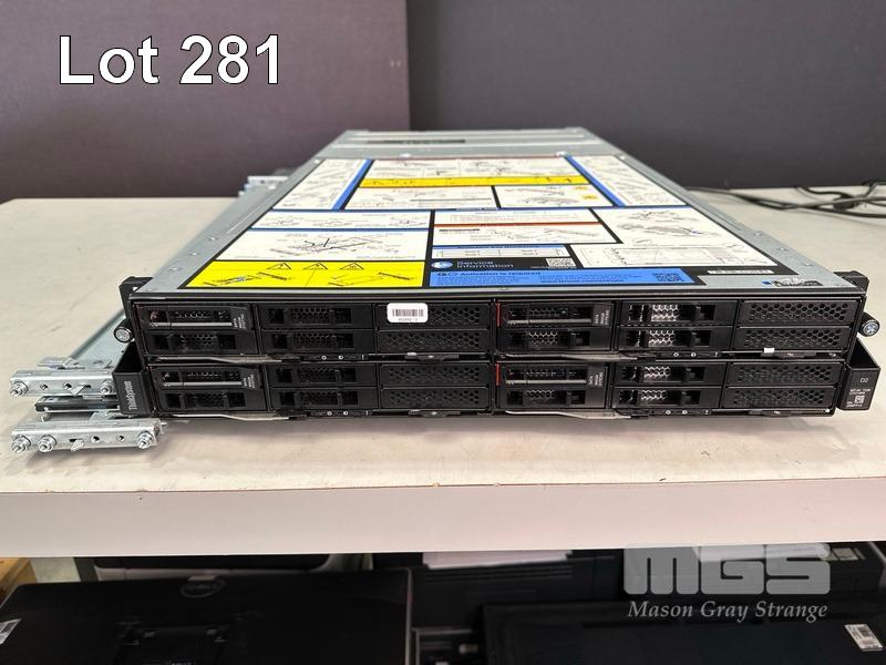 RACKMOUNT SERVER, LENOVO THINKSYSTEM D2 ENCLOSURE, TYPE 7X20, 2U WITH 4 x SD530 SERVER NODES - EACH WITH 2 x XEON GOLD 6248 @ 2.5GHz, 192GB ECC DDR4 RAM (12x16GB), 1 x 960GB SATA SSD WITH RAILS (NO CABLES) S/N:J300FP12