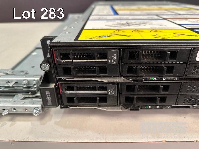 RACKMOUNT SERVER, LENOVO THINKSYSTEM D2 ENCLOSURE, TYPE 7X20, 2U WITH 4 x SD530 SERVER NODES - EACH WITH 2 x XEON GOLD 6248 @ 2.5GHz, 192GB ECC DDR4 RAM (12x16GB), 1 x 960GB SATA SSD WITH RAILS (NO CABLES) S/N:J300FP19