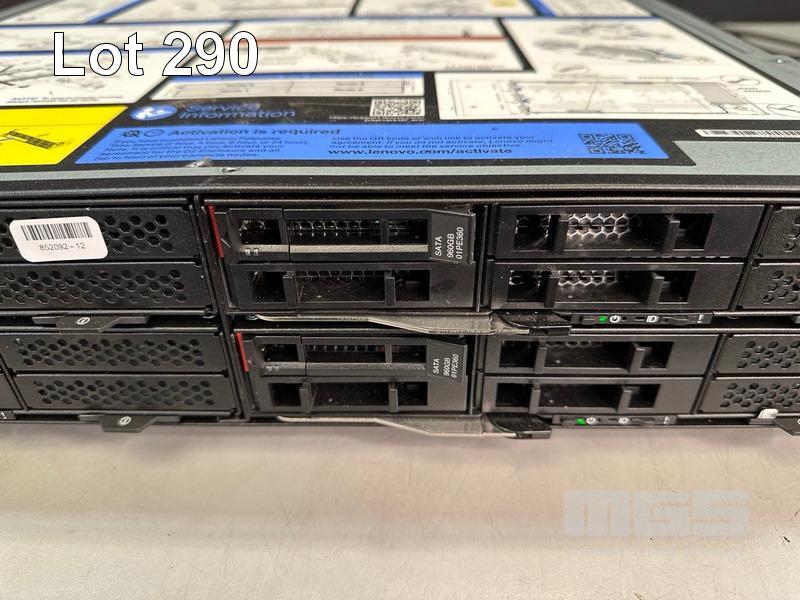 RACKMOUNT SERVER, LENOVO THINKSYSTEM D2 ENCLOSURE, TYPE 7X20, 2U WITH 4 x SD530 SERVER NODES - EACH WITH 2 x XEON GOLD 6248 @ 2.5GHz, 192GB ECC DDR4 RAM (12x16GB), 1 x 960GB SATA SSD WITH RAILS (NO CABLES) S/N:J300FP1A