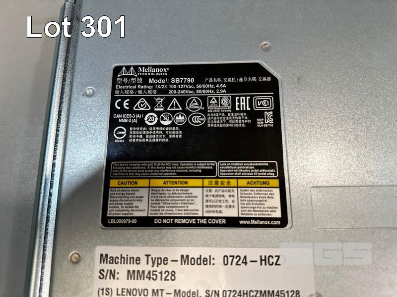 MELLANOX SB7790 100Gb/s INFINIBAND QSFP28 36-PORT SWITCH, 0724-HCZ, 2 x PSU WITH RAILS S/N:MM45128