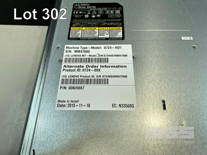 MELLANOX SB7790 100Gb/s INFINIBAND QSFP28 36-PORT SWITCH, 0724-HD1, 2 x PSU WITH RAILS S/N:MM47080