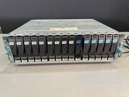 RACKMOUNT STORAGE ARRAY, DELL EMC2, MODEL KTN-STL3, 1 x 400GB FLASH, 5 x 200GB FLASH, 9 x 100GB FLASH, 2 x SAS CONTROLLERS, 2 x PSU (NO CABLES)