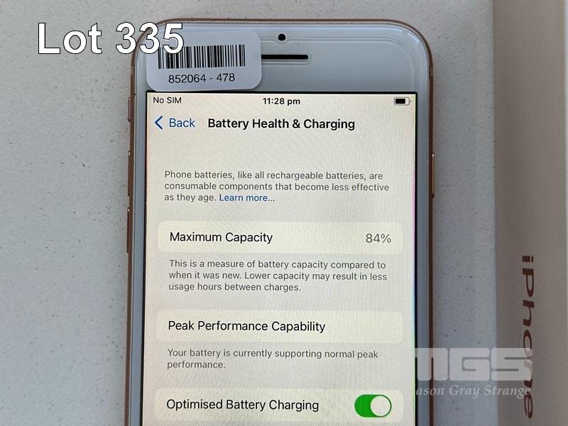 APPLE iPHONE 8, 256GB, GOLD, MODEL MQ7H2X/A, BATTERY HEALTH 84% (NO CABLE, NO CHARGER) S/N:C7CVH104JC6Q