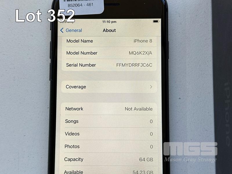 APPLE iPHONE 8, 64GB, SPACE GREY, MODEL MQ6K2X/A, BATTERY HEALTH 89% (NO CABLE, NO CHARGER) S/N:FFMYDRRFJC6C