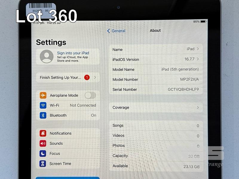 APPLE iPAD 5TH GEN, 32GB, Wi-Fi, SPACE GREY, MODEL MP2F2X/A, A1822 (NO CABLE, NO CHARGER) S/N:GCTVQ8HDHLF9