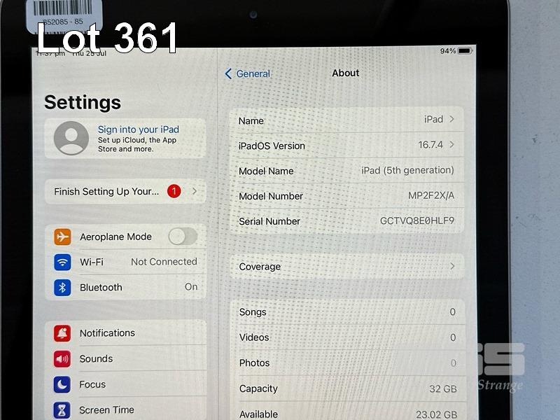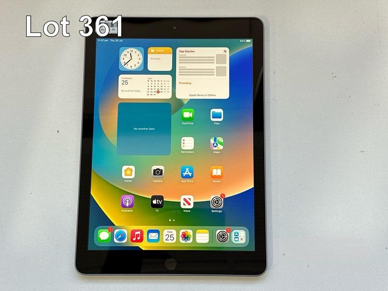APPLE iPAD 5TH GEN, 32GB, Wi-Fi, SPACE GREY, MODEL MP2F2X/A, A1822 (NO CABLE, NO CHARGER) S/N:GCTVQ8E0HLF9