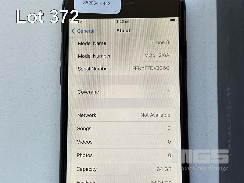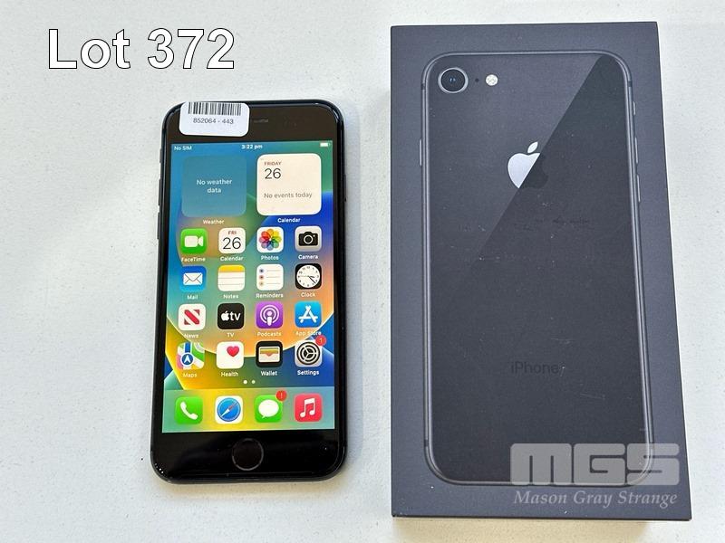 APPLE iPHONE 8, 64GB, SPACE GREY, MODEL MQ6K2X/A, BATTERY HEALTH 87% (NO CABLE, NO CHARGER) S/N:FFNYF7DVJC6C