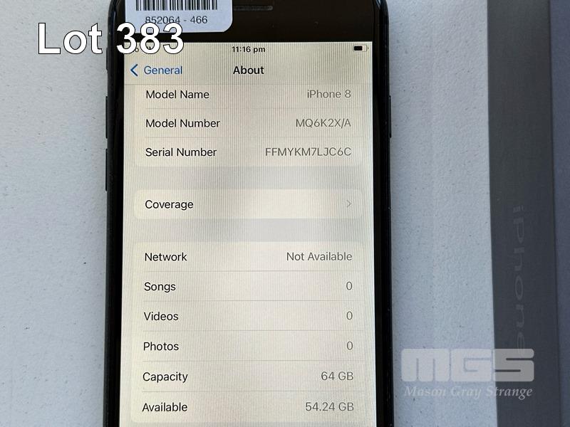 APPLE iPHONE 8, 64GB, SPACE GREY, MODEL MQ6K2X/A, BATTERY HEALTH 84% (NO CABLE, NO CHARGER) S/N:FFMYKM7LJC6C