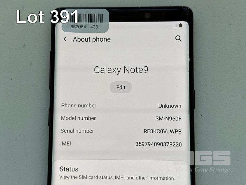 SAMSUNG GALAXY NOTE9 SMARTPHONE, 128GB, BLACK, MODEL SM-N960F (NO USB-C CABLE, NO CHARGER) S/N:RF8KC0VJWPB