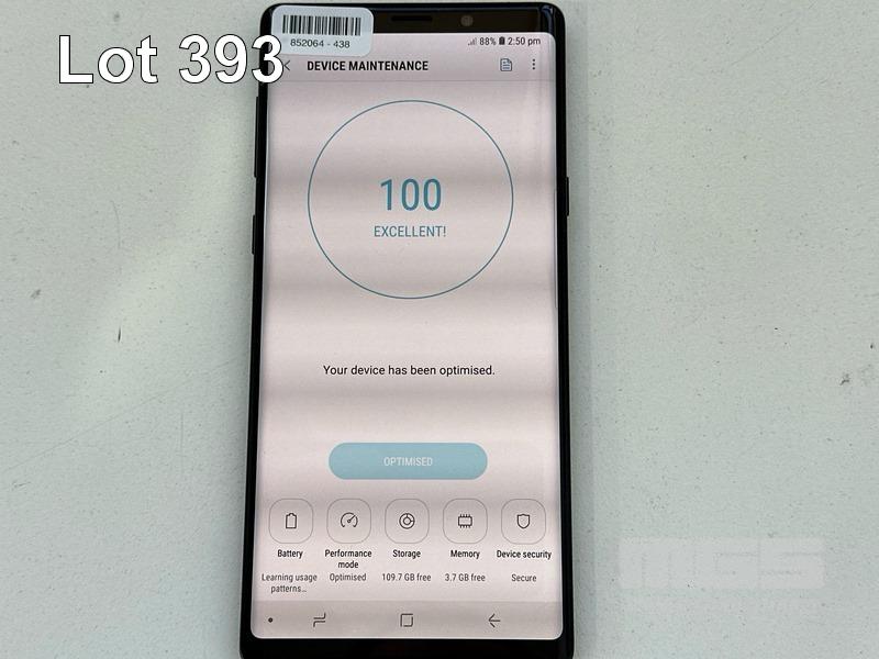 SAMSUNG GALAXY NOTE9 SMARTPHONE, 128GB, BLACK, MODEL SM-N960F (NO USB-C CABLE, NO CHARGER) (NOTE: MINOR SCRATCHES ON SCREEN) S/N:R58K90C7GEP