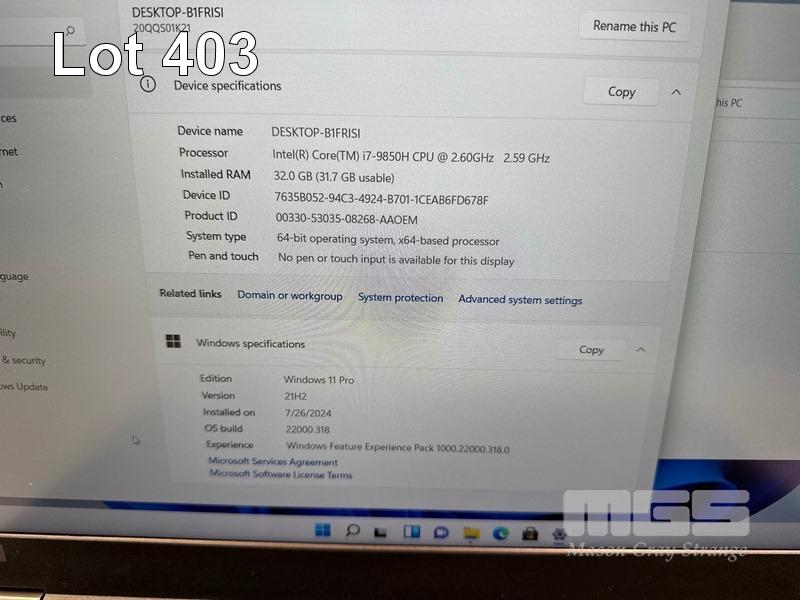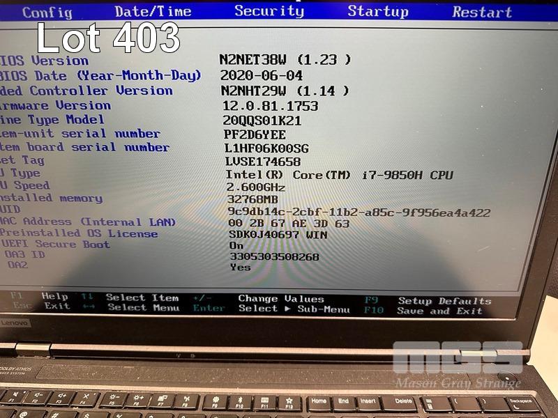 LAPTOP, LENOVO THINKPAD P53 MOBILE WORKSTATION, TYPE 20QQ, CORE i7 9850H (9TH GEN) @ 2.6GHz, 32GB DDR4 RAM, 1TB NVMe M.2 SSD, 15.6" WIDESCREEN (1920x1080), 4GB NVIDIA QUADRO T2000 VIDEO, Wi-Fi, BLUETOOTH, WINDOWS 11 PRO INSTALLED & POWER SUPPLY S/N:PF2D6YEE