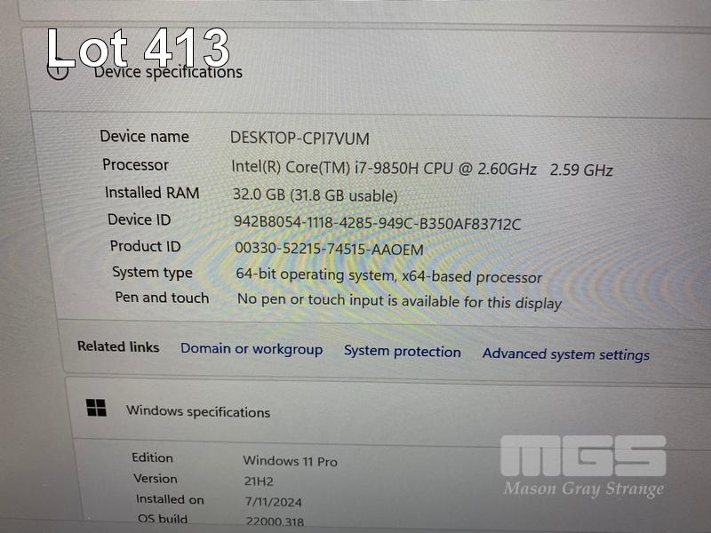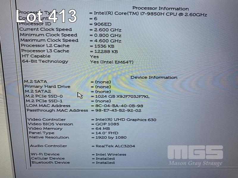 LAPTOP, DELL LATITUDE 5401, CORE i7 9850H (9TH GEN) @ 2.6GHz, 32GB DDR4 RAM, 1TB NVMe M.2 SSD, 14" WIDESCREEN (1920x1080), 2GB NVIDIA GEFORCE MX150 VIDEO, INTEL UHD GRAPHICS 630, Wi-Fi, CELLULAR, BLUETOOTH, WINDOWS 11 PRO INSTALLED (NO POWER SUPPLY) (NOTE: MINOR MARKS ON SCREEN) S/N:GPRSZY2