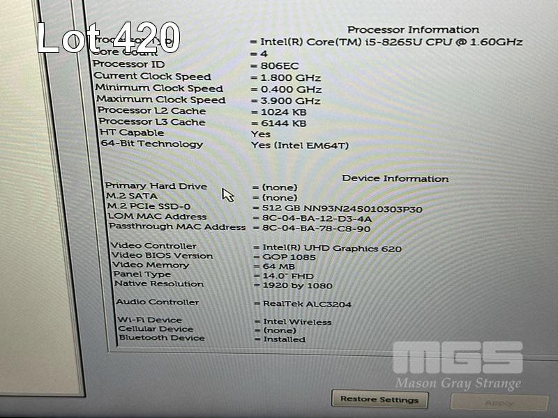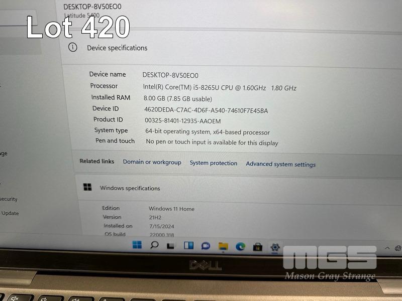 LAPTOP, DELL LATITUDE 5400, CORE i5 8265U (8TH GEN) @ 1.6GHz, 8GB DDR4 RAM, 512GB NVMe M.2 SSD, 14" WIDESCREEN (1920x1080), INTEL UHD GRAPHICS 620, Wi-Fi, BLUETOOTH, WINDOWS 11 HOME INSTALLED & POWER SUPPLY S/N:94Q73X2